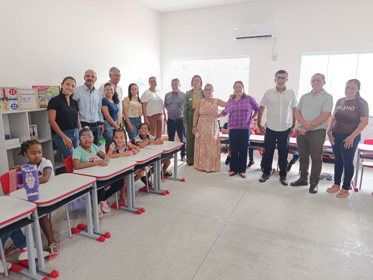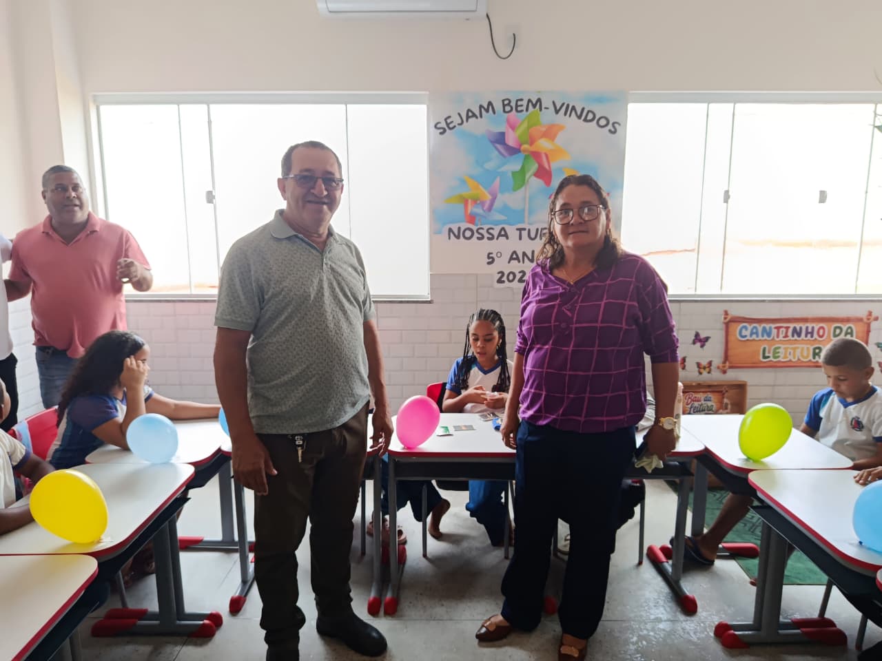 Estiveram presentes o prefeito João Veiga; vice-prefeita Graça, o vereador Gianni; o secretário de Educação, Uelton Borges; as coordenadoras Ilidia e Taila; o secretário de Infraestrutura, Tonhão; professores da unidade; coordenadores; pais e alunos, todos recepcionados pela diretora Denice Lina Rodrigues e pela vice-diretora Delvânia Lina Rodrigues. “Foi uma alegria celebrar esse início das aulas com todos aqui presentes, nessa escola modelo de boa educação, que representa mais um compromisso de nossa gestão, por meio da Secretaria de Educação, Secretaria de Obras e outros parceiros”, destacou o prefeito João Veiga.