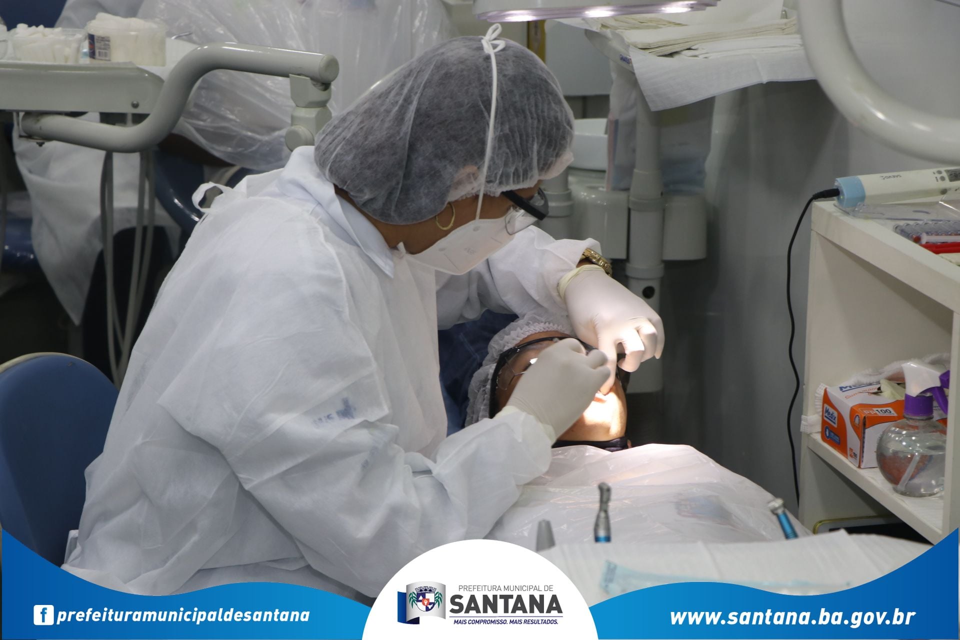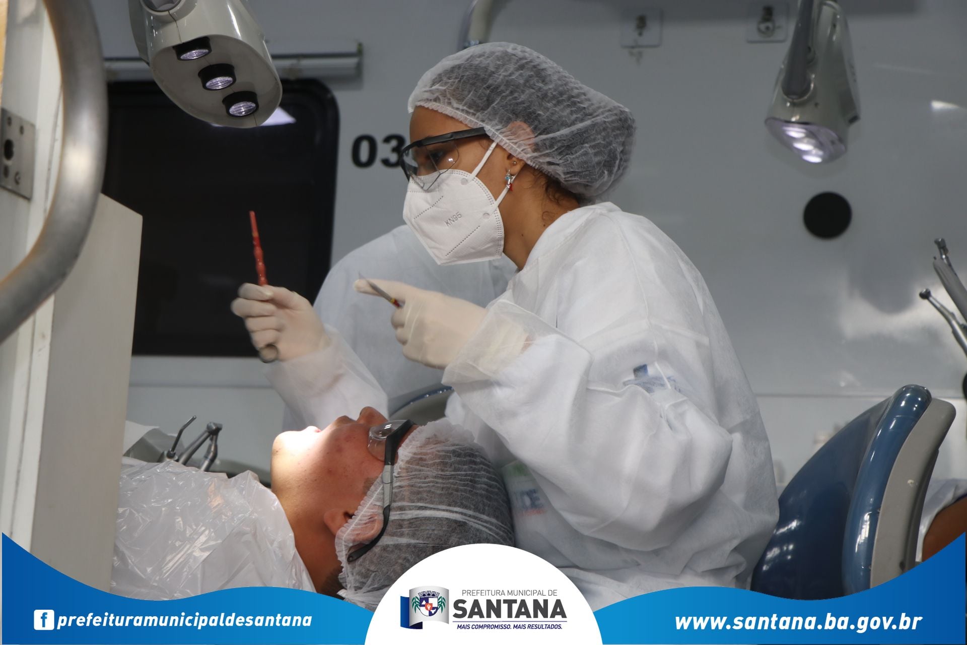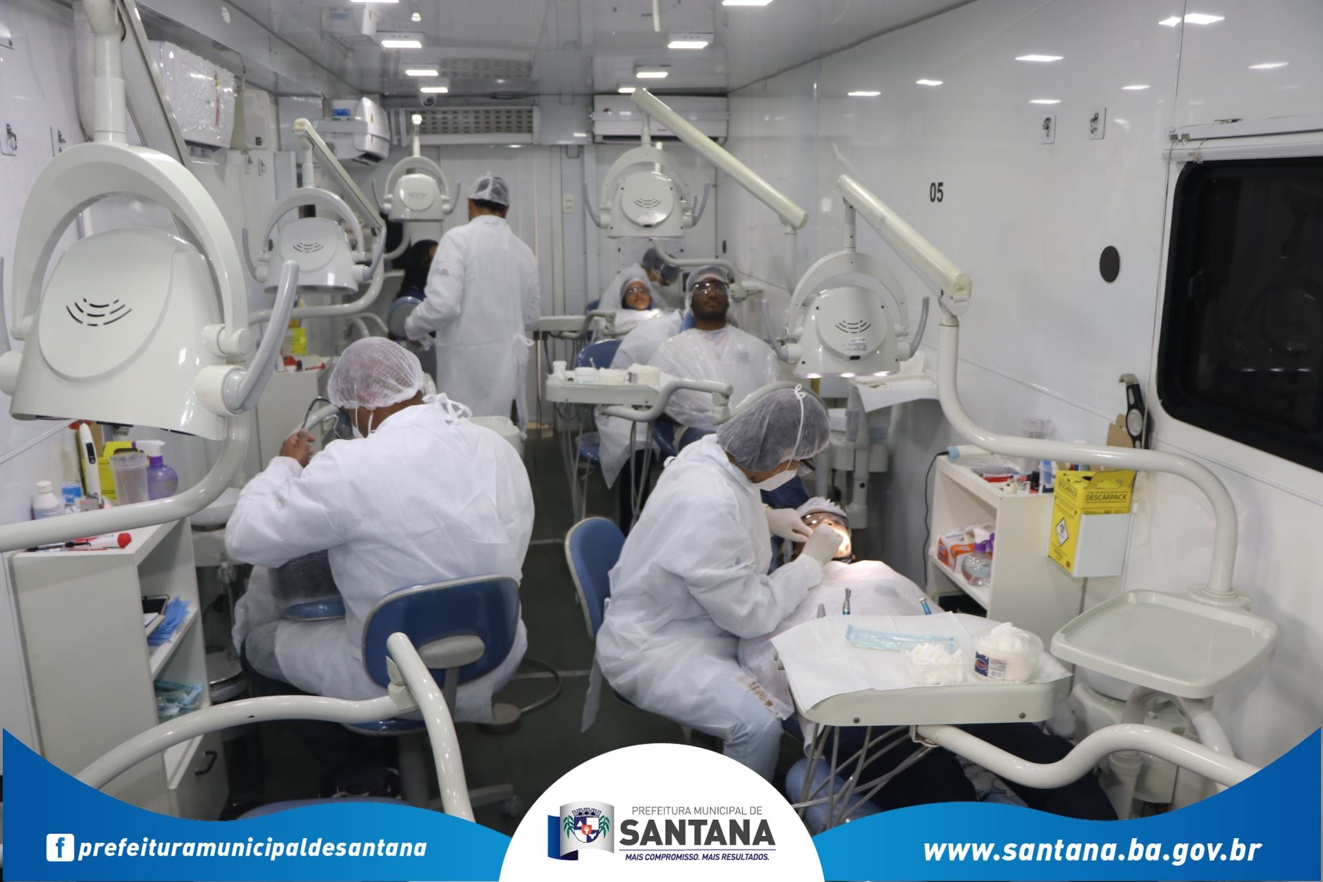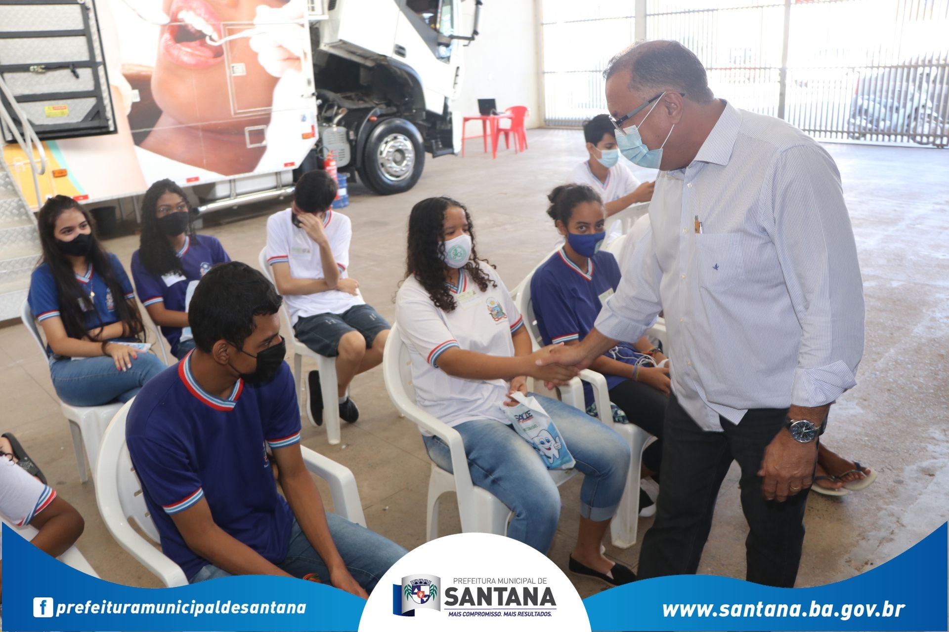 Nesta terça-feira (26), o prefeito Marcão Cardoso, acompanhado dos secretários municipais e vereadores, recepcionou e deu as boas-vindas à equipe do projeto Saúde Móvel, que trouxe a Santana mutirão de atendimento odontológico gratuito para alunos da rede pública estadual e municipal. Serão 1.400 atendimentos para crianças e jovens cadastrados nas escolas, com autorização prévia dos pais.