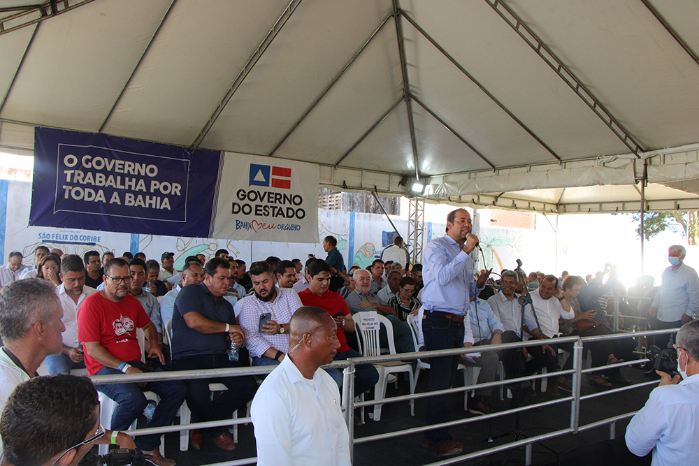 O município de São Felix do Coribe, no Oeste do estado, foi o segundo a receber a visita do governador Rui Costa nesta terça-feira (3). Ele assinou ordem de serviço para a construção de uma nova sede para o Colégio Estadual do Rio Corrente e autorizou convênios com a prefeitura local para a urbanização de área de lazer da Prainha, para a duplicação e pavimentação da Avenida Luís Eduardo Magalhães e para a pavimentação de diversas outras ruas do município. Na manhã desta terça-feira, o governador já havia inaugurado a 22ª Policlínica Regional de Saúde em Santa Maria da Vitória, município vizinho a São Félix.