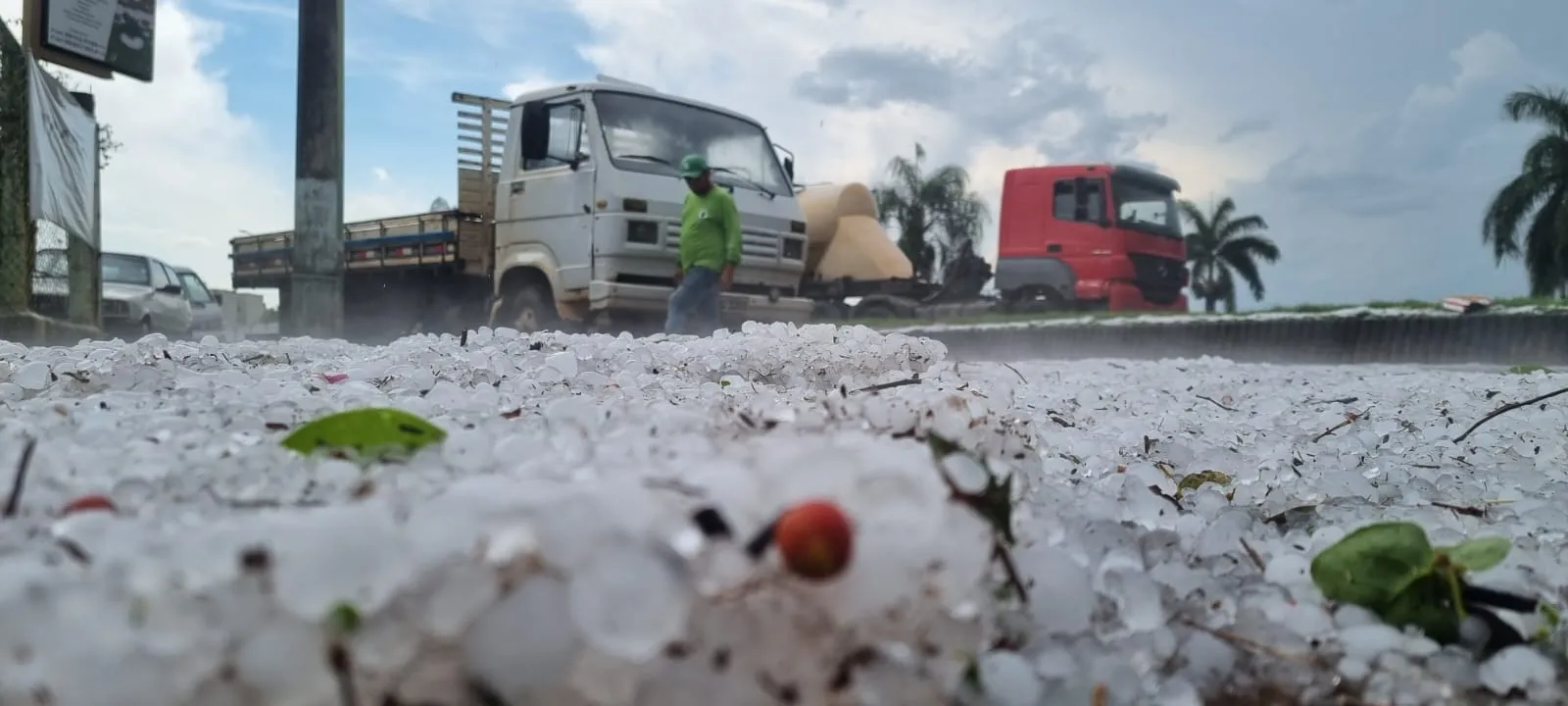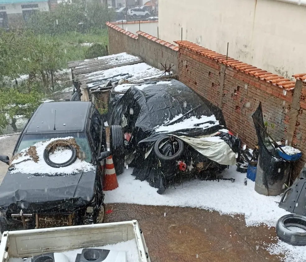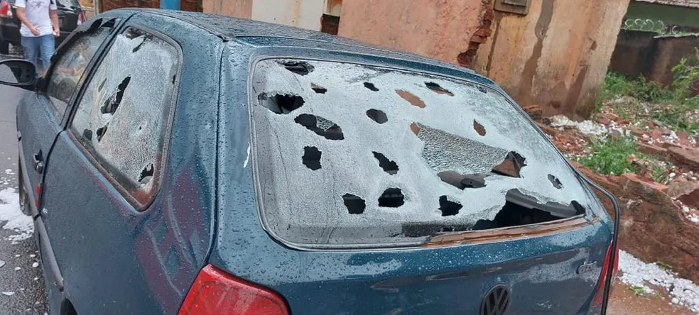 Em Campos Gerais, a chuva de granizo causou estragos, como queda de energia, veículos danificados, quedas de árvores e telhados quebrados.