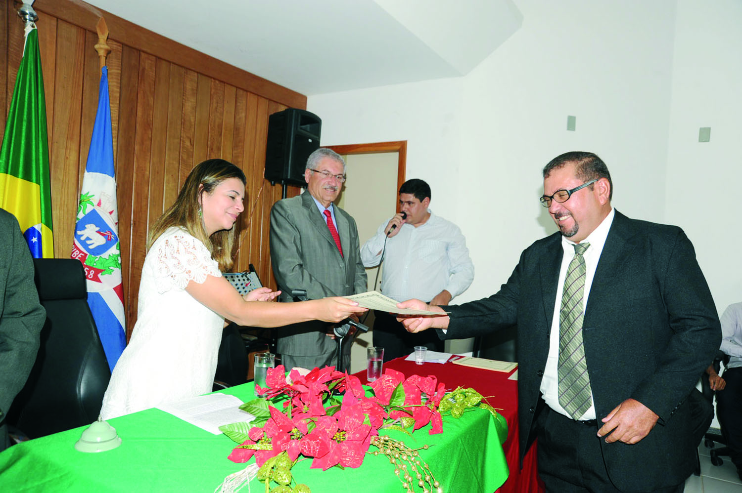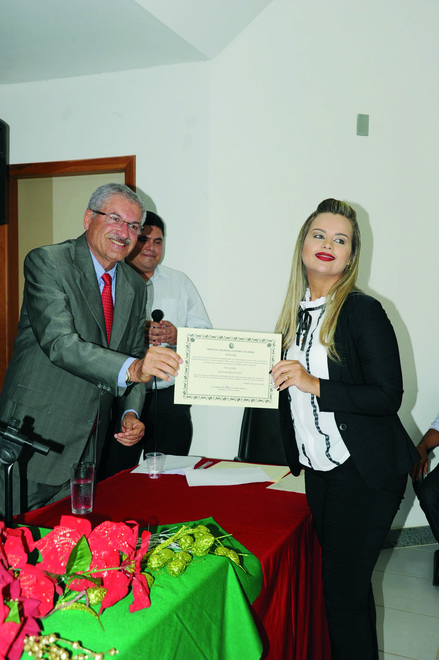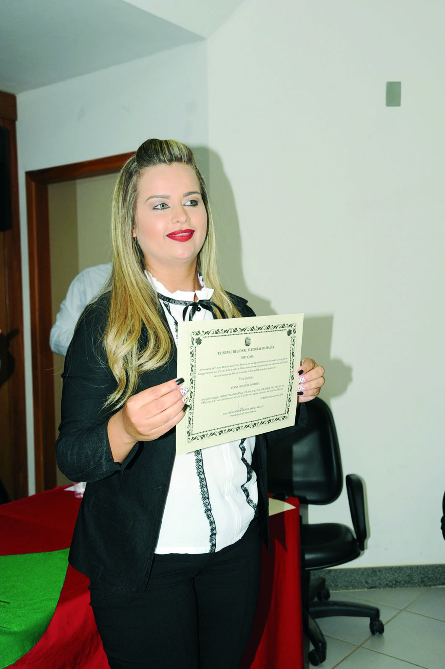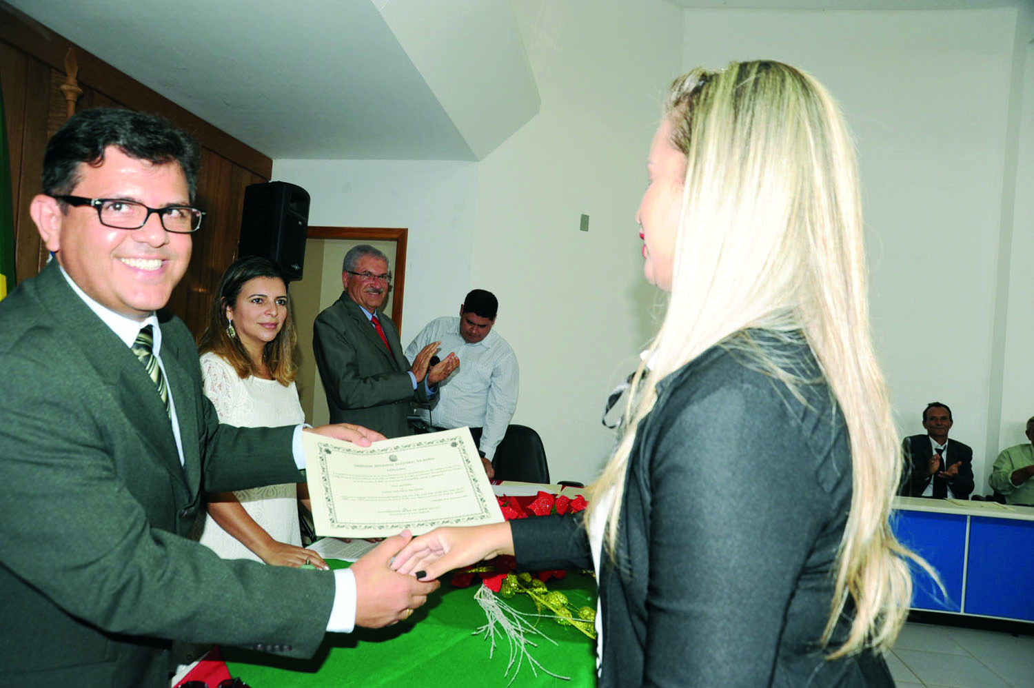 Após, foram convocados todos os eleitos para receber os diplomas eleitorais das mãos da representante da Justiça Eleitoral.