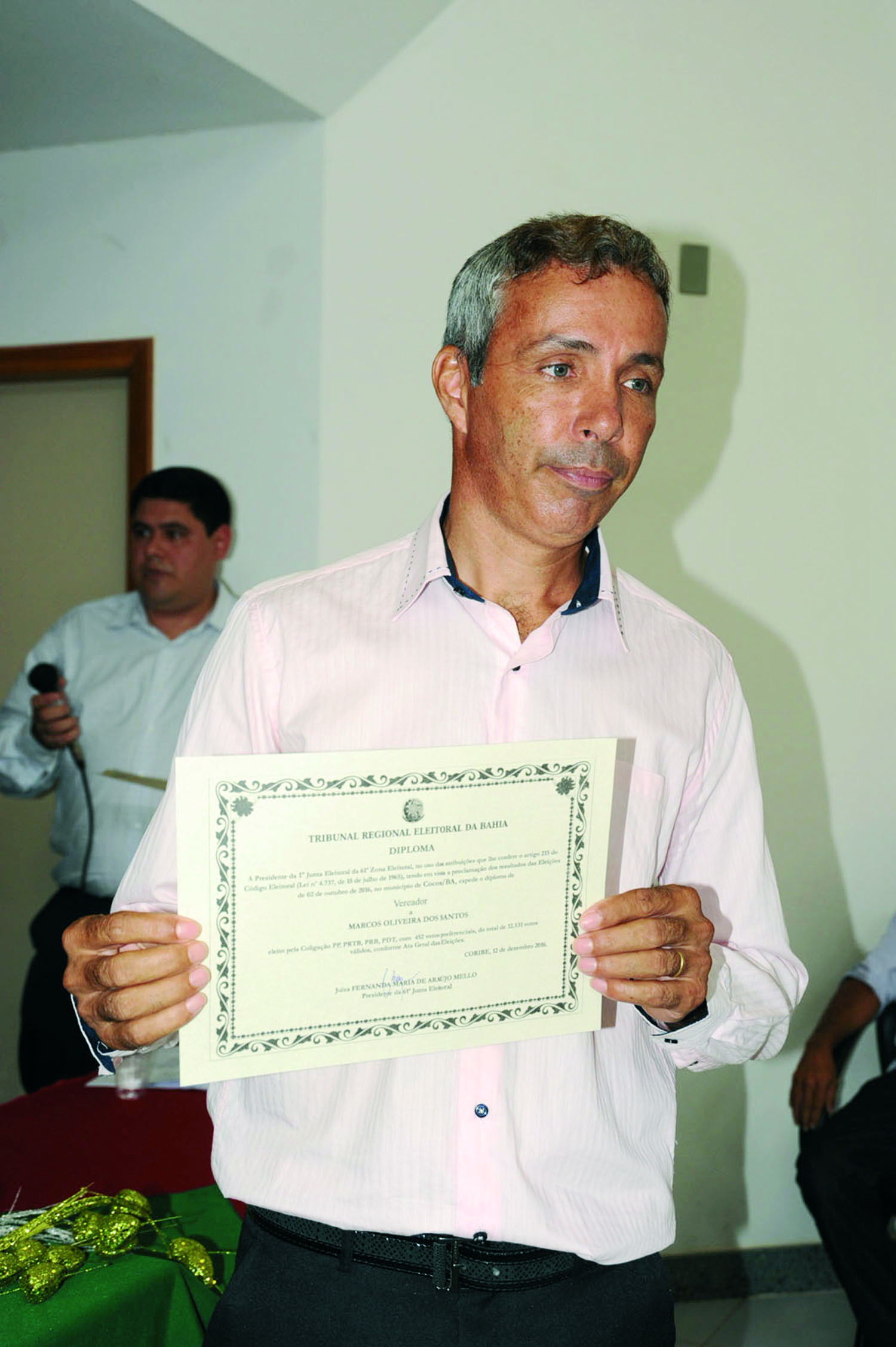 Foram diplomados o prefeito eleito, Marcelo Souza Emerenciano, a vice-prefeita, Ivana Gouveia da Costa, e os vereadores eleitos Neilton Lopes Pereira, Francisco Balisa Falcão, Benedito Alves da Silva, Adailton da Silva Miclos, Francisco Assis Neto, Senhorinho Batista do Bonfim, Marcos Oliveira dos Santos, Enaldo Costa de Lima, João Paulo Leão Ribeiro, Jailton Vieira dos Santos e Raquel Ana Macedo Costa. Ainda foram diplomados os suplentes de vereador Odeni Ribeiro dos Santos, Nélio Viana Borja e Robson Lopes Bonfim.